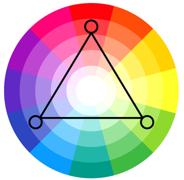 Na kruhu zvolíme jednu barvu, kterou doplníme o dvě stejně vzdálené. To znamená, že mezi každou z nich budou 3 jiné. Výsledná triáda je sice kontrastní, ale dokonale harmonická. Můžete si tak pohrát s doplňky, botami i samotnými barevnými šperky.