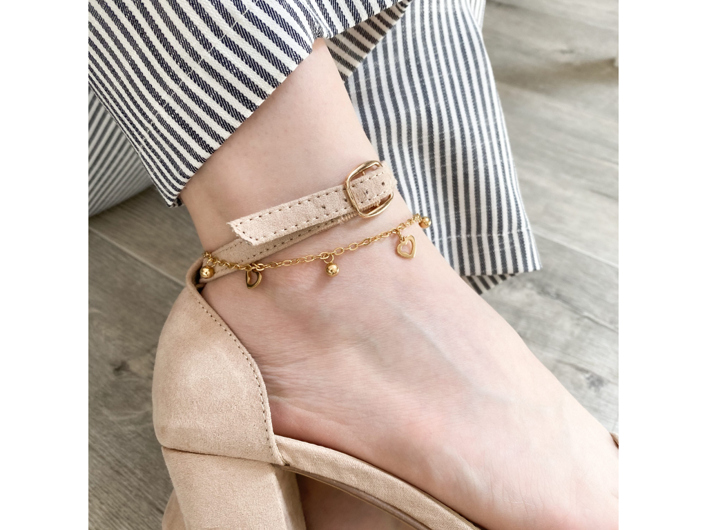 S0750 Řetízek na nohu SRDÍČKA GOLD