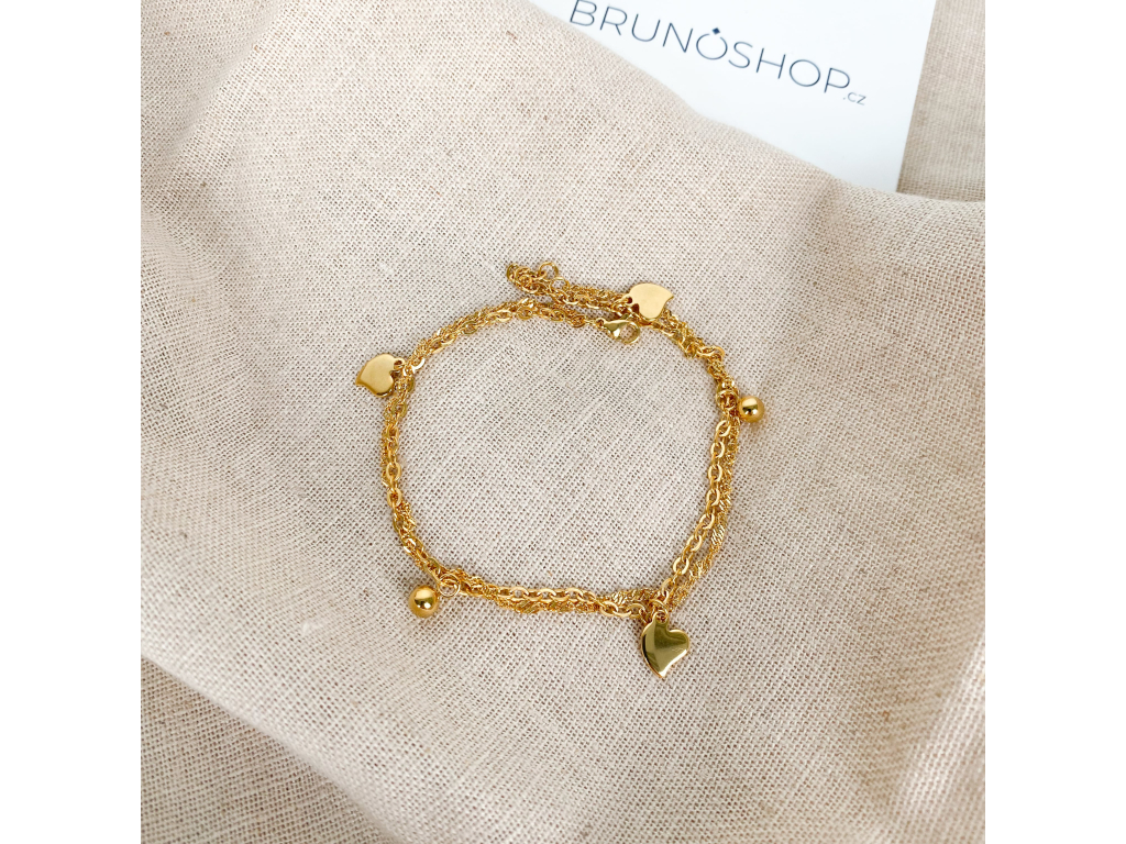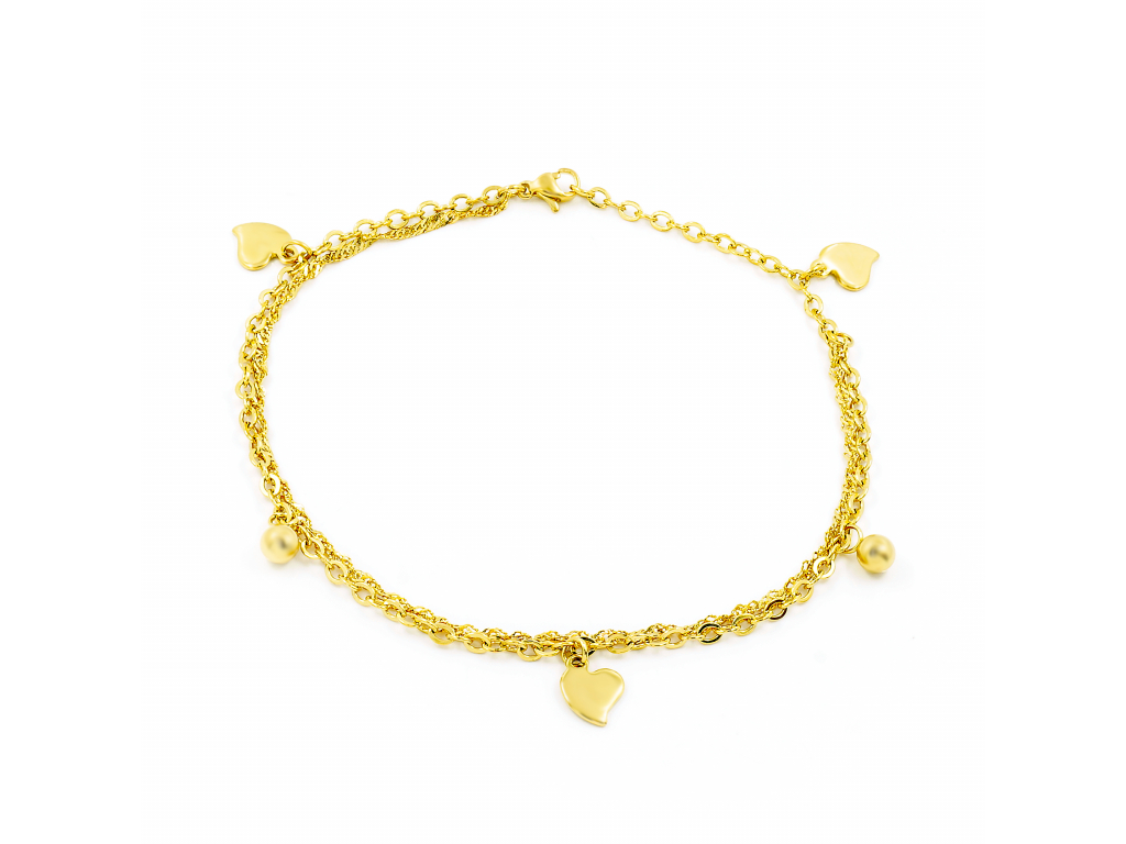 S4097 Dvojitý řetízek na nohu SRDCE GOLD